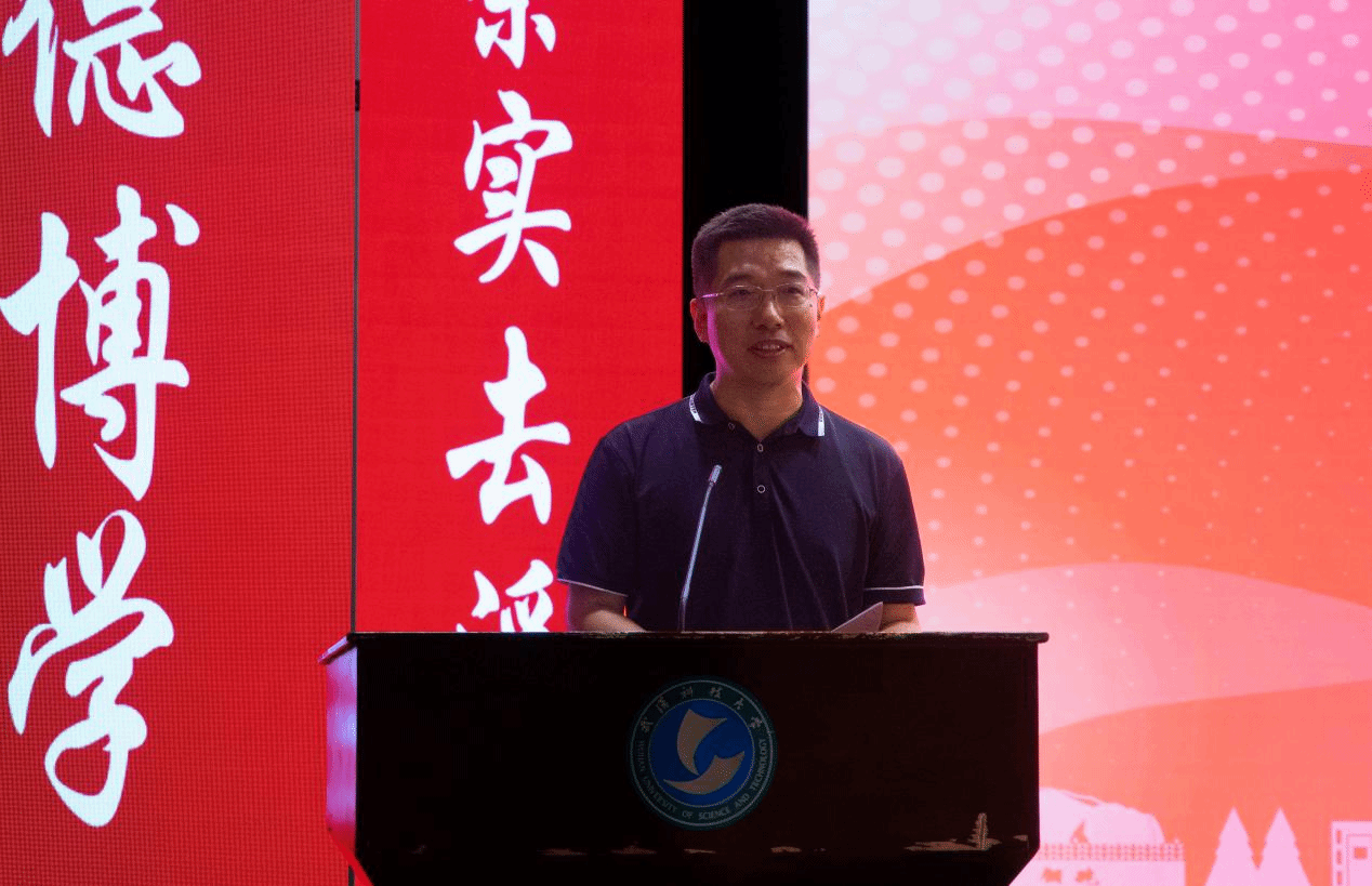 高年级学生代表赵若婷和新生代表陈博伟先后发言。陈博伟代表全体2025级新生表示,将尽快完成从高中到大学的过渡,找准前行方向、夯实专业本领、丰富大学生活。他承诺将以饱满的热情刻苦钻研,在电子信息领域书写自己的精彩篇章。