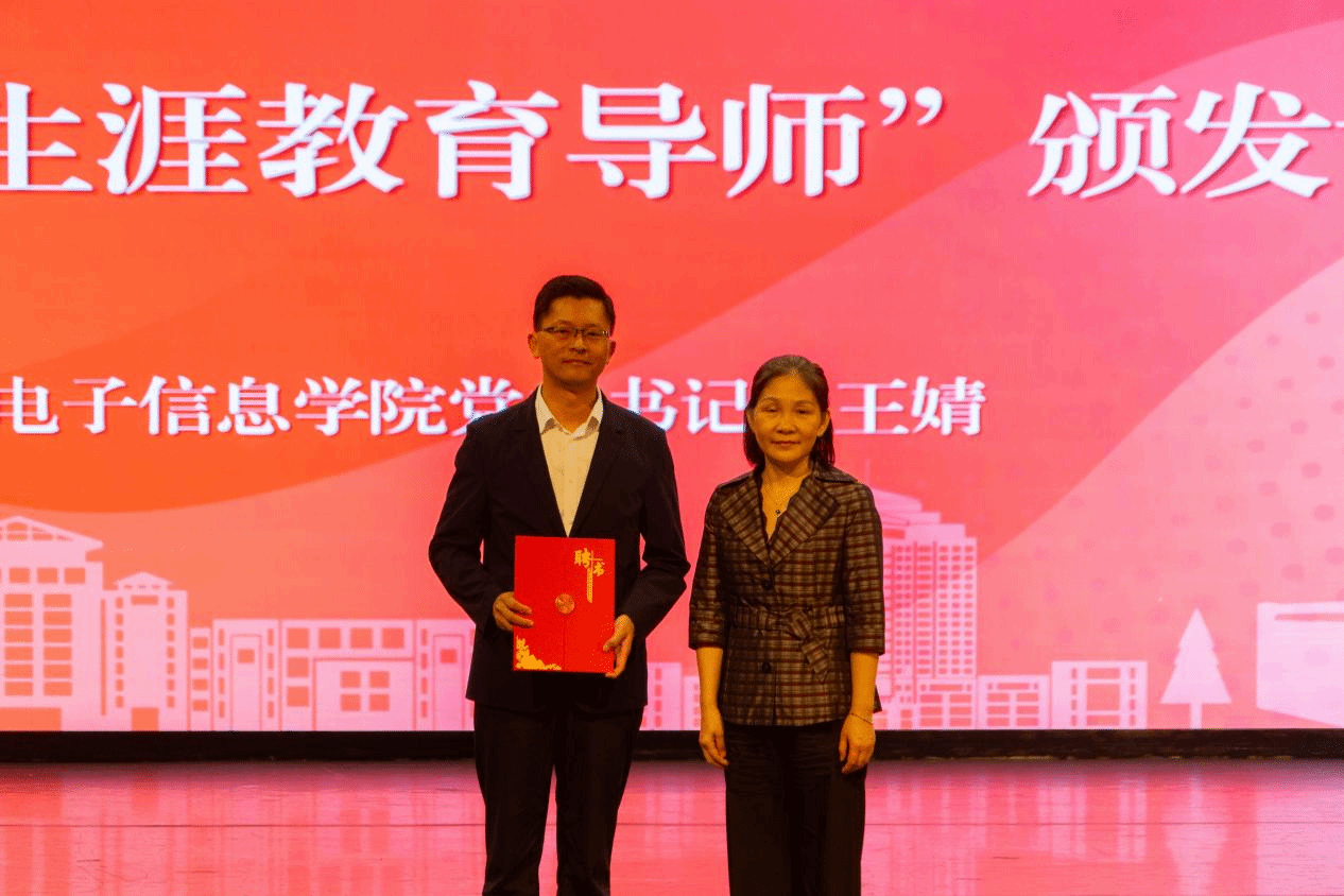 典礼上,学院党委书记王婧为校友代表、普宙科技有限公司总经理陈虎颁发了“校外生涯教育导师”聘书。陈虎在随后的发言中,回顾了自己十七年前在武科大的求学经历。他强调,真正的创新依靠思维的火花,而非仅仅依赖先进的工具。他鼓励学弟学妹们要脚踏实地,利用学院与宝武钢铁、烽火通信等30余家龙头企业建立的科研合作网络,将论文写在生产线上。